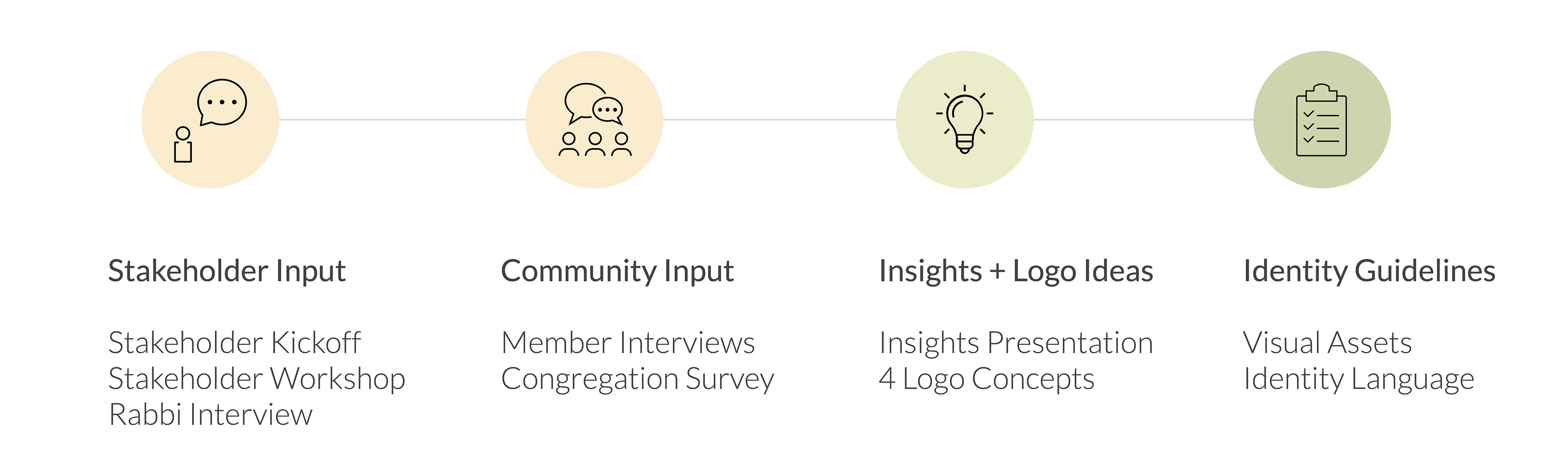 As a team we believe the research phase of the design process is incredibly important. Through research we sought to extract an essence and a voice for Or Hadash directly from the people who comprise the community. The interview data informed not just our visual design choices, but also a framework for talking about and expressing the essence of the organization.