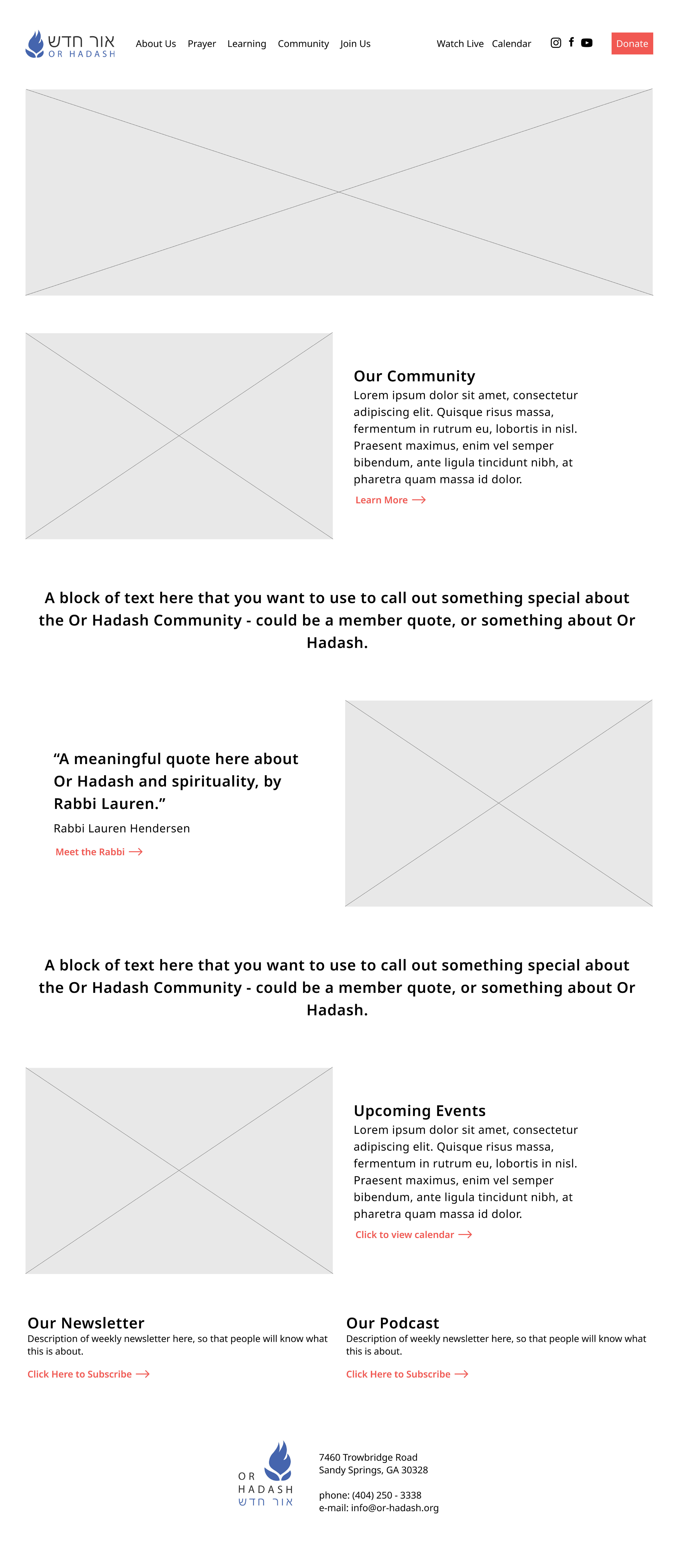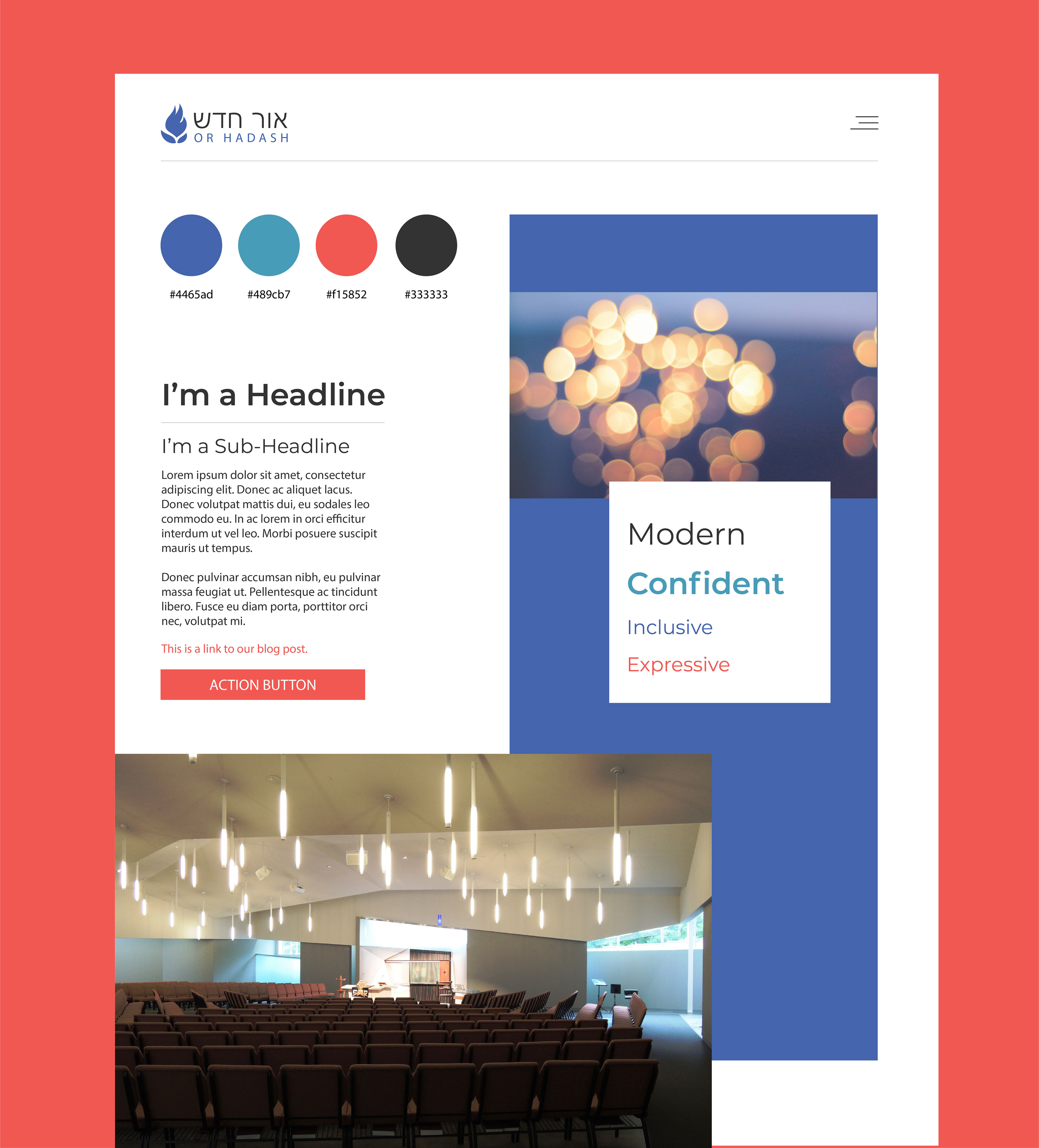We kicked off the project with a stakeholder intake workshop to assess the internal goals of the new brand and website with an emphasis on understanding Or Hadash’s values and vision for the future from leadership. We also conducted an in-depth interview with the head Rabbi of the congregation.
